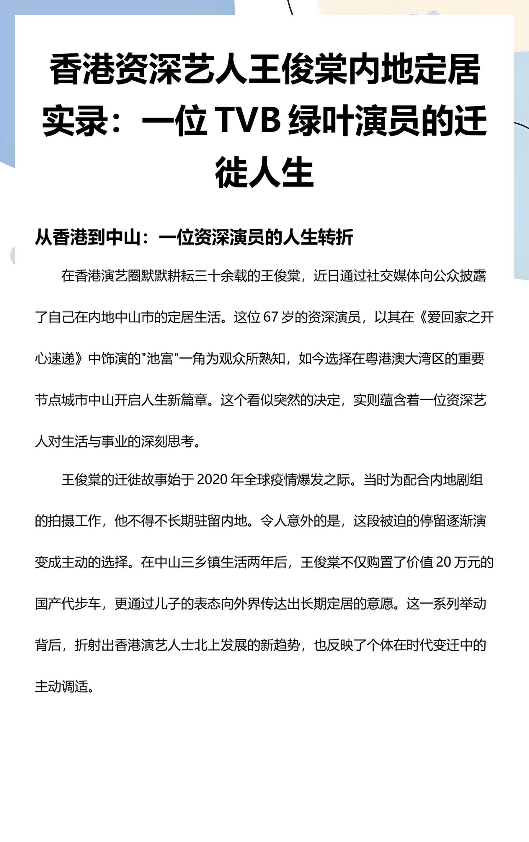 如今的古明华在内地开了两家茶餐厅,墙上挂满和明星的合影,但最显眼的还是那张泛黄的TVB工牌。“我永远记得2003年第一次领薪水,8000块港币,攥在手里能捏出水来。”他说现在每次收到演出费,还是会下意识分成三份:一份存起来,一份寄给香港的母亲,剩下的奖励自己吃顿烧鹅饭。上个月有粉丝在餐厅偶遇他,发现这个荧幕上的“丑角”正戴着老花镜,认真给自闭症儿童写鼓励卡片。 从卖车养家到综艺爆红,古明华的故事像极了TVB剧里的经典桥段——平凡人在绝境中不放弃,终会等到属于自己的高光时刻。正如他在采访中说的:“演员就像煲汤,配角是慢火细熬的汤底,少了这味料,再鲜美的主角也出不了味道。”现在他最骄傲的不是商演报价涨了多少,而是儿子学会的第一句完整句子:“爸爸,你演的戏,我看懂了。”